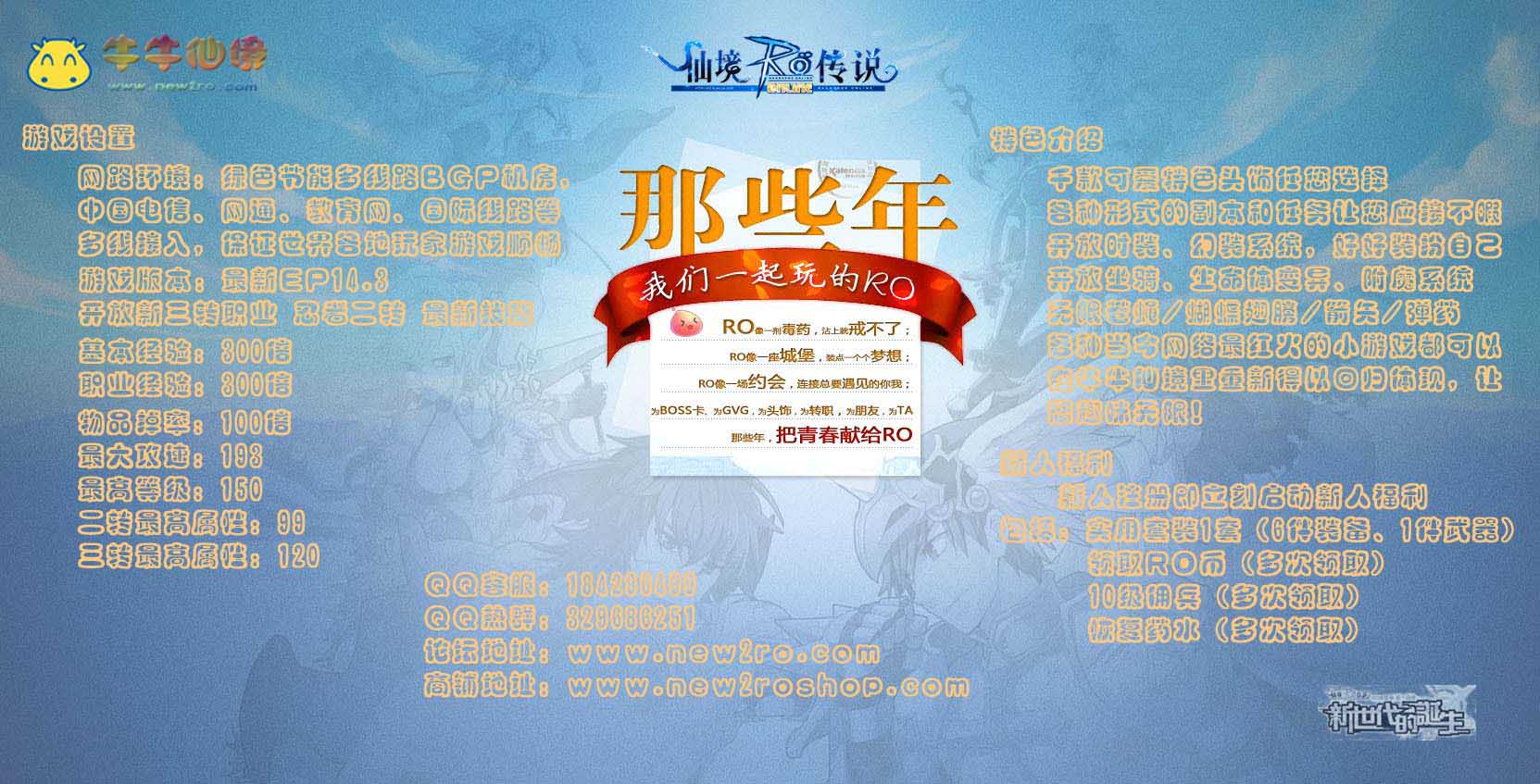 【牛牛仙境】 指尖上的仙境 亲,看图说话!o(≧v≦)o~~好棒 现阶段,私服众多,不可否认,每个SF都有自己的特色优点,但是要在茫茫人海中找到个合适自己的并不简单,当然,这也是非常重要的,所谓众口难调。如果选择我们的话,我们定当尽心尽力,迎合各位的口味,尽管到最后您还是不满意的话那只能说明我们有缘无分了。正所谓,有了选择才会有答案。 选择我们 【牛牛RO】游戏注册:点击注册 【牛牛RO】游戏下载:点击下载 【牛牛RO】游戏论坛:http://www.new2ro.com/ 【牛牛RO】游戏客服QQ:184296499 【牛牛RO】游戏讨论QQ群:329686251 ﹡拒绝烟花 长久未来﹡ [共同见证] 亲,我们不会以各种[保证绝对不烟花,保证绝对会长久]这样的广告语形式去说明我们,我们要说的只是四个字[共同见证],只有这么多。因为长久是属于时间上的范畴,未来的事物,对于新开服的我们需要更多的不是口头上的承诺,而是实际行动的付出和时间上的考验,唯有时间才能证明一切,您如果愿意加入我们的行列就必须监督我们,我们也愿意接受监督。让我们共同见证这真正意义上的长久吧! 以下介绍以图说话